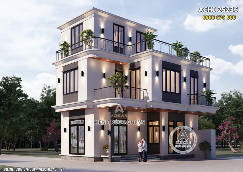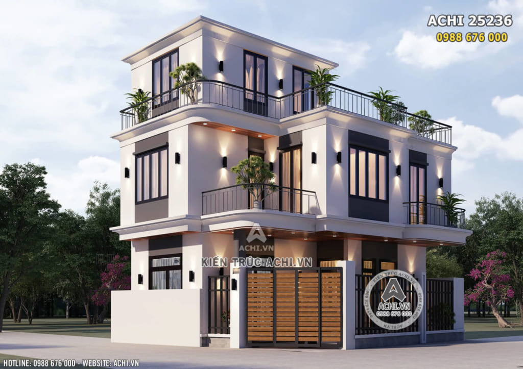 ACHI 25236 là mẫu biệt thự 3 tầng phong cách hiện đại, thiết kế đơn giản nhưng được trau chuốt kỹ lưỡng trong từng chi tiết. Công trình phù hợp với nhiều loại hình đất khác nhau: đất phố, đất lô góc, đất vùng ven đô hoặc khu dân cư mới.