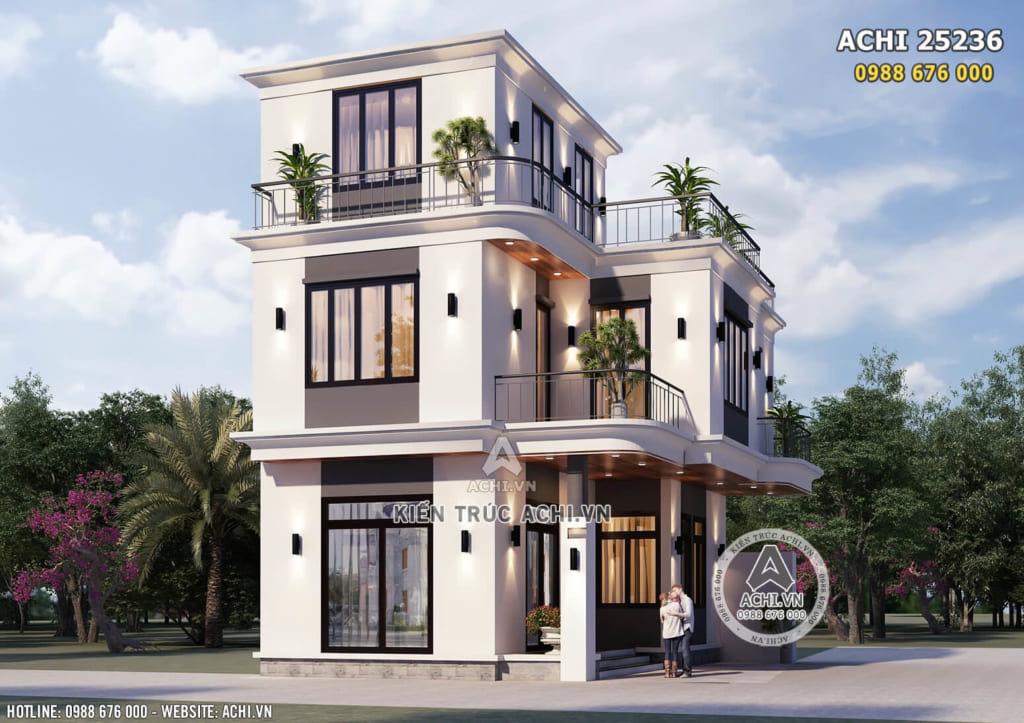 1. Tổng quan mẫu nhà 3 tầng đẹp hiện đại, đơn giản – Mã số: ACHI 25236